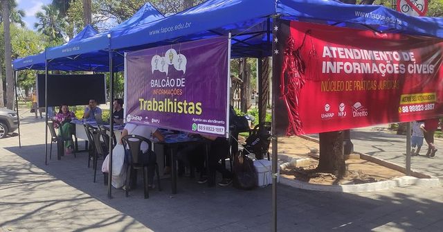 No ocasião, os alunos que estão cursando as disciplinas de Práticas Jurídicas Reais estiveram na Praça Padre Cicero, em Juazeiro do Norte, atendendo a população através da prestação de informações jurídicas no âmbito do direito do trabalho e do direito civil.
