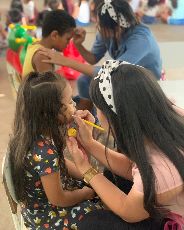 O momento foi uma tarde de muita diversão com pintura em rosto, corrida de sacos, boliche etc, além da entrega de sacolinhas com pipocas, bombons, pirulitos e a entrega dos brinquedos.